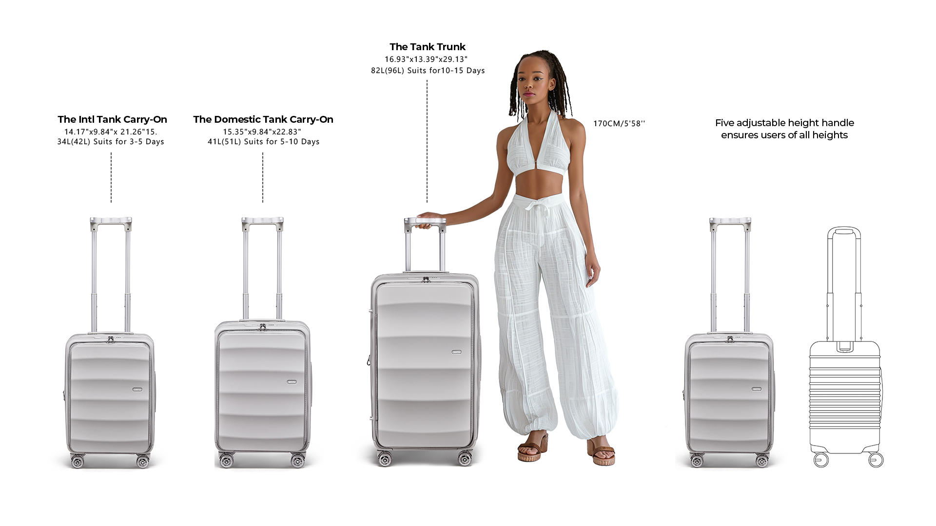 Need more room? Unzip to expand by 35%. The 20'' carry-on fits a full week’s essentials—perfect for Long-distance Trips or Family Trip.